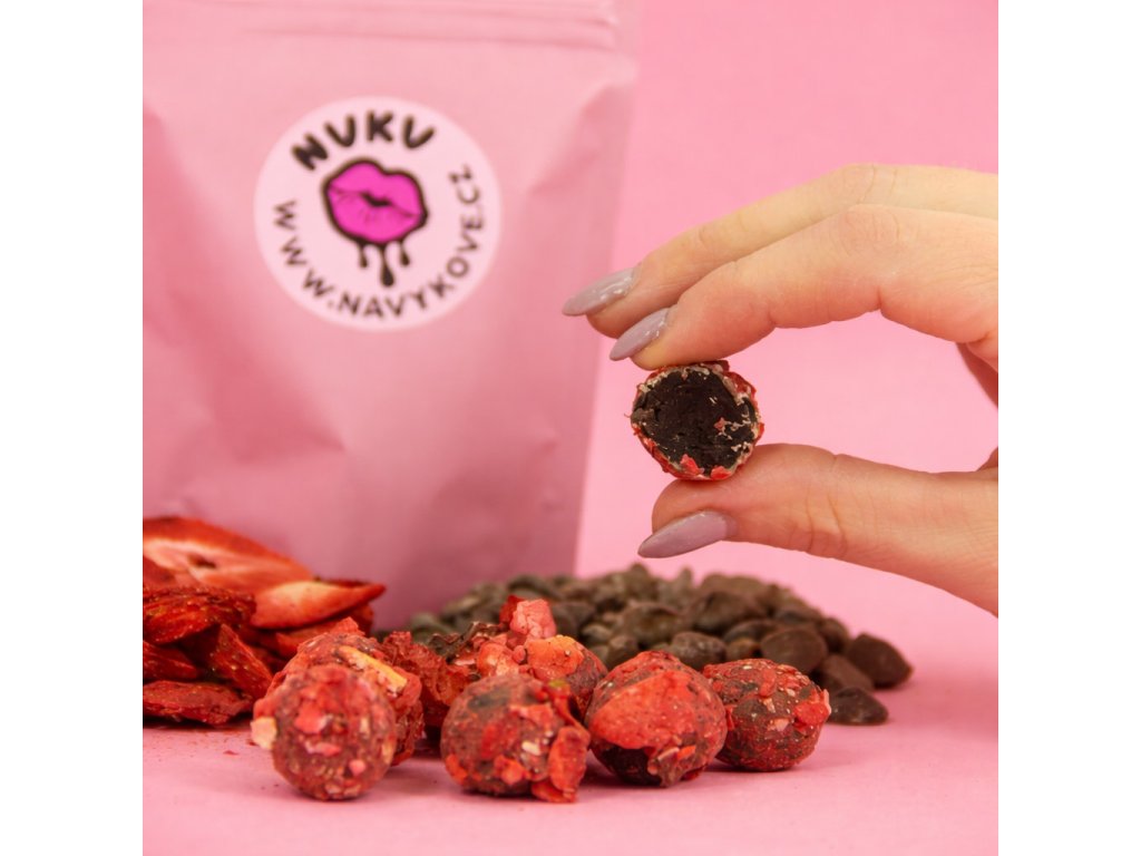 Naše brownies kuličky jsou neskutečně intenzivní – uvnitř najdeš bohaté čokoládové těsto, které se rozplývá na jazyku, a zvenku lahodný obal z belgické mléčné čokolády obalené v lyofilizovaných jahodách.