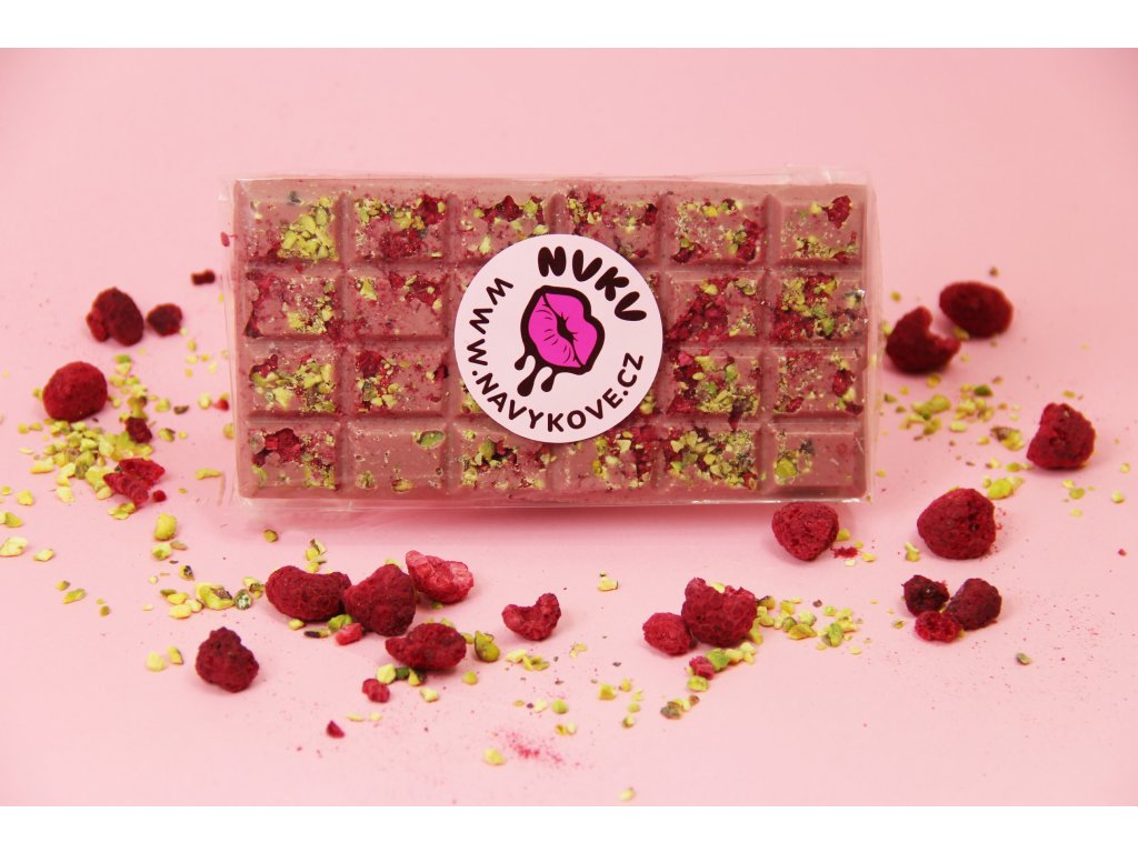 RUBY ČOKOLÁDA S MALINAMI A PISTÁCIEMI