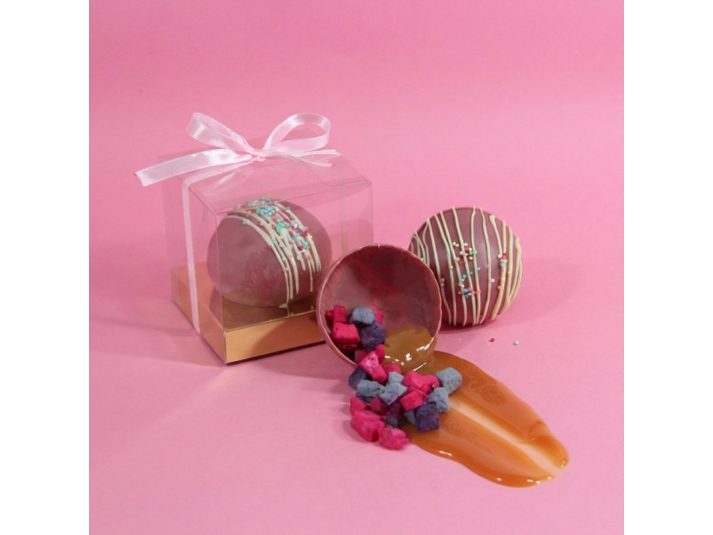 Naše čokoládové koule je vyráběná z belgické ruby čokolády, která se hned po kontaktu s teplem začne pozvolna rozplývat a vytváří hutný čokoládový nápoj s příjemně sladkým dozvukem.